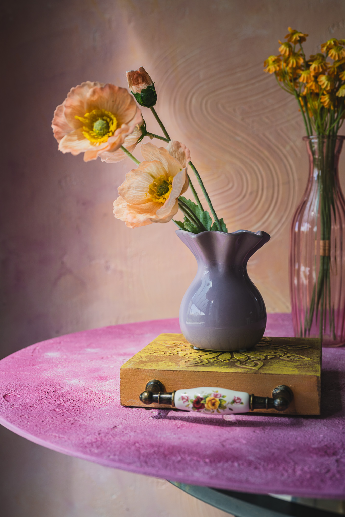 Ta niewielka, ręcznie malowana deska to nie tylko dekoracja — to fotograficzny rekwizyt, który potrafi zupełnie odmienić klimat zdjęcia. Dzięki swoim kompaktowym rozmiarom i unikatowemu wykończeniu świetnie sprawdza się jako:
