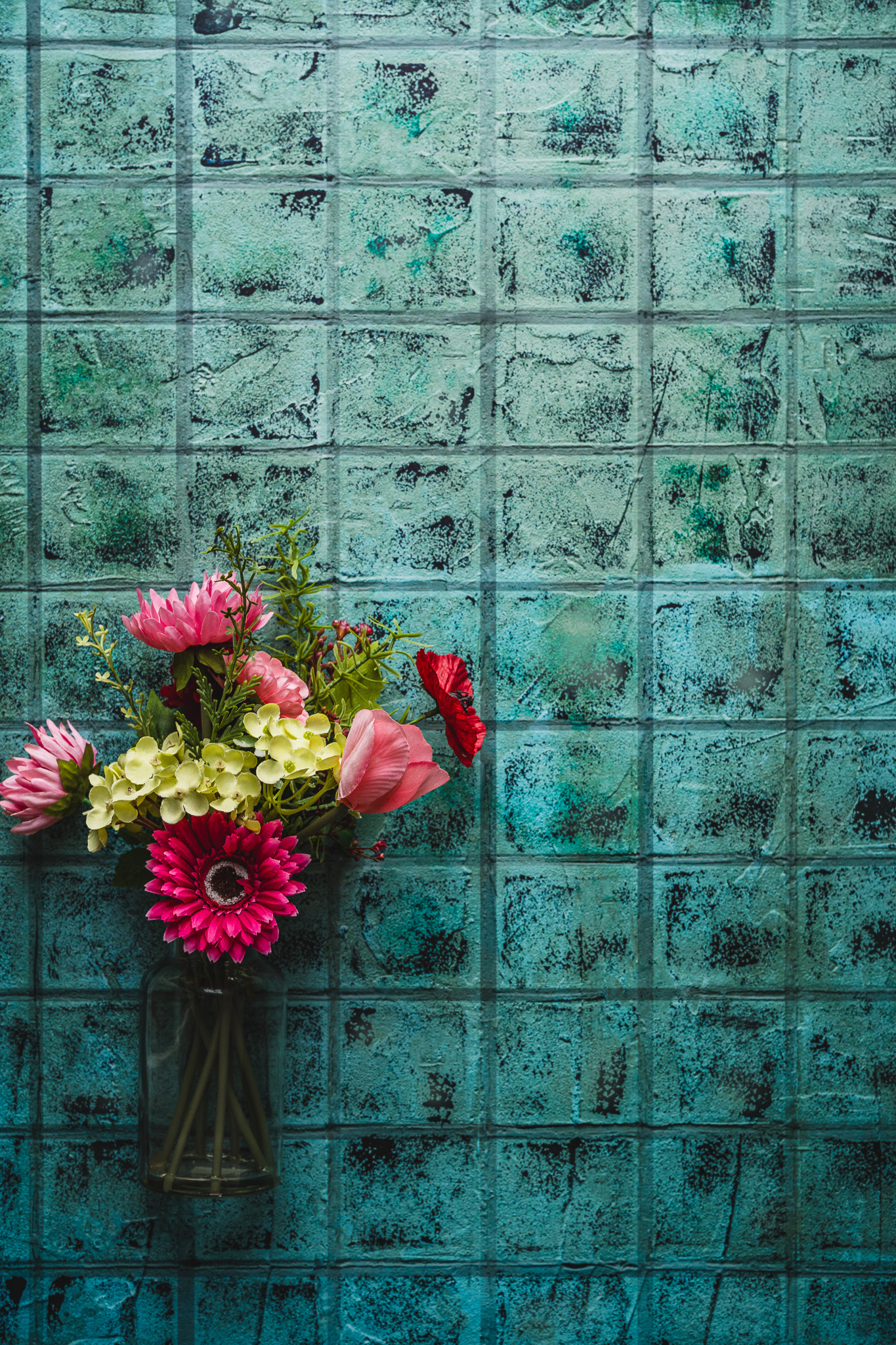 Tło Fotograficzne Aqualis – Tło w odcieniu turkusowo niebieskim, zaznaczone kafle. Wzór z Tła ręcznie malowanego.