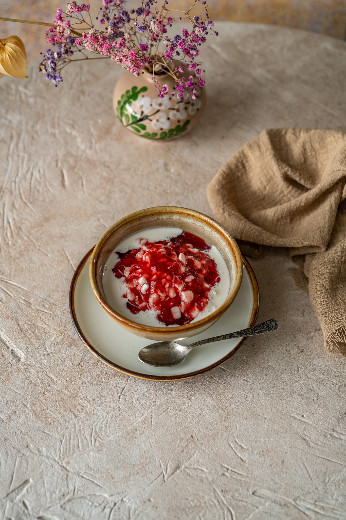 ✔️ Uniwersalny kształt – okrągłe tło dobrze kadruje się z góry (flat lay), tworząc przyjemną dla oka kompozycję.