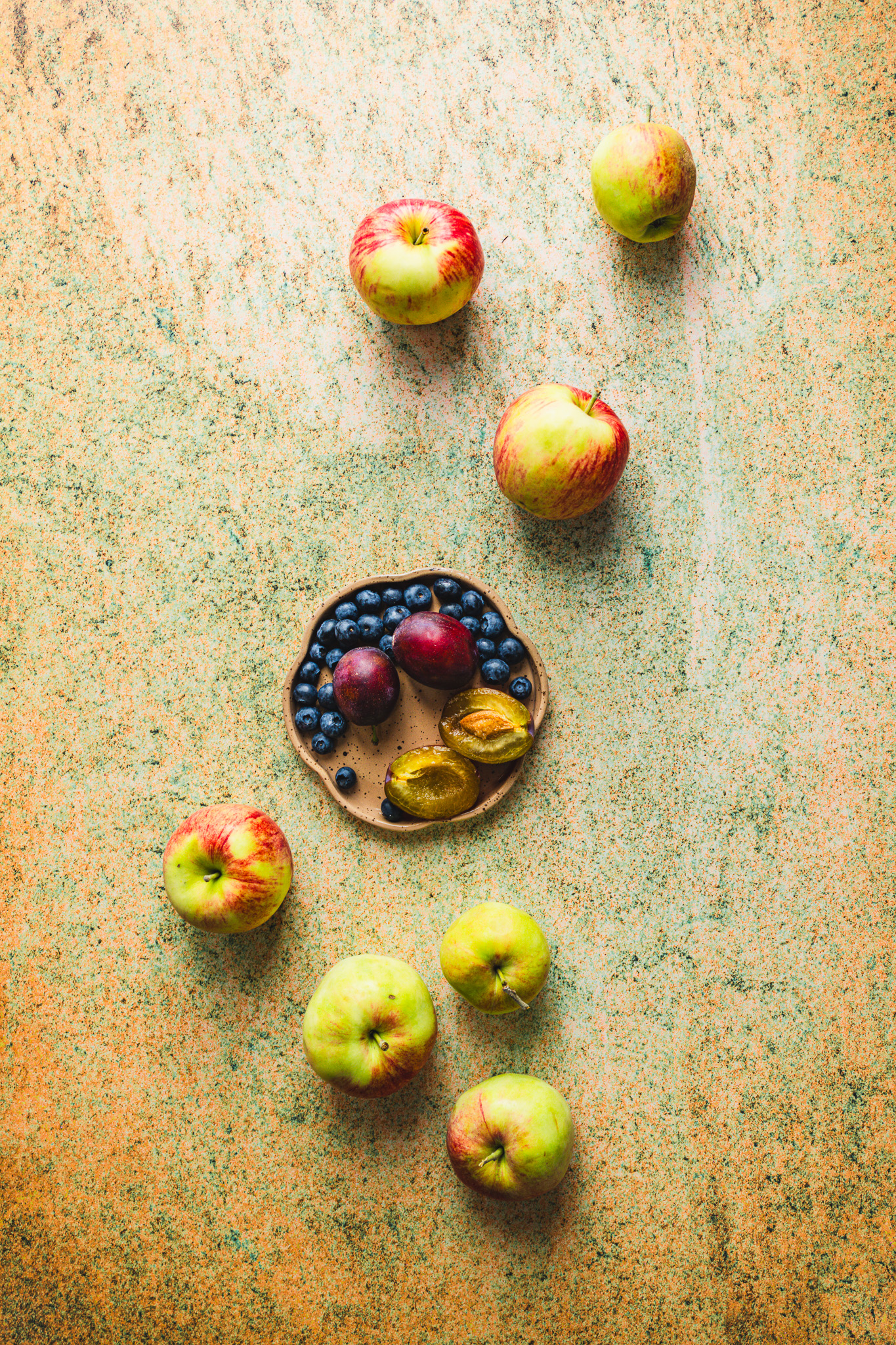 Tło Fotograficzne Greenery – Tło Kamienne w zielonym ŚWIEŻYM, ale spokojnym kolorze z przechodzącym pomarańczowym.