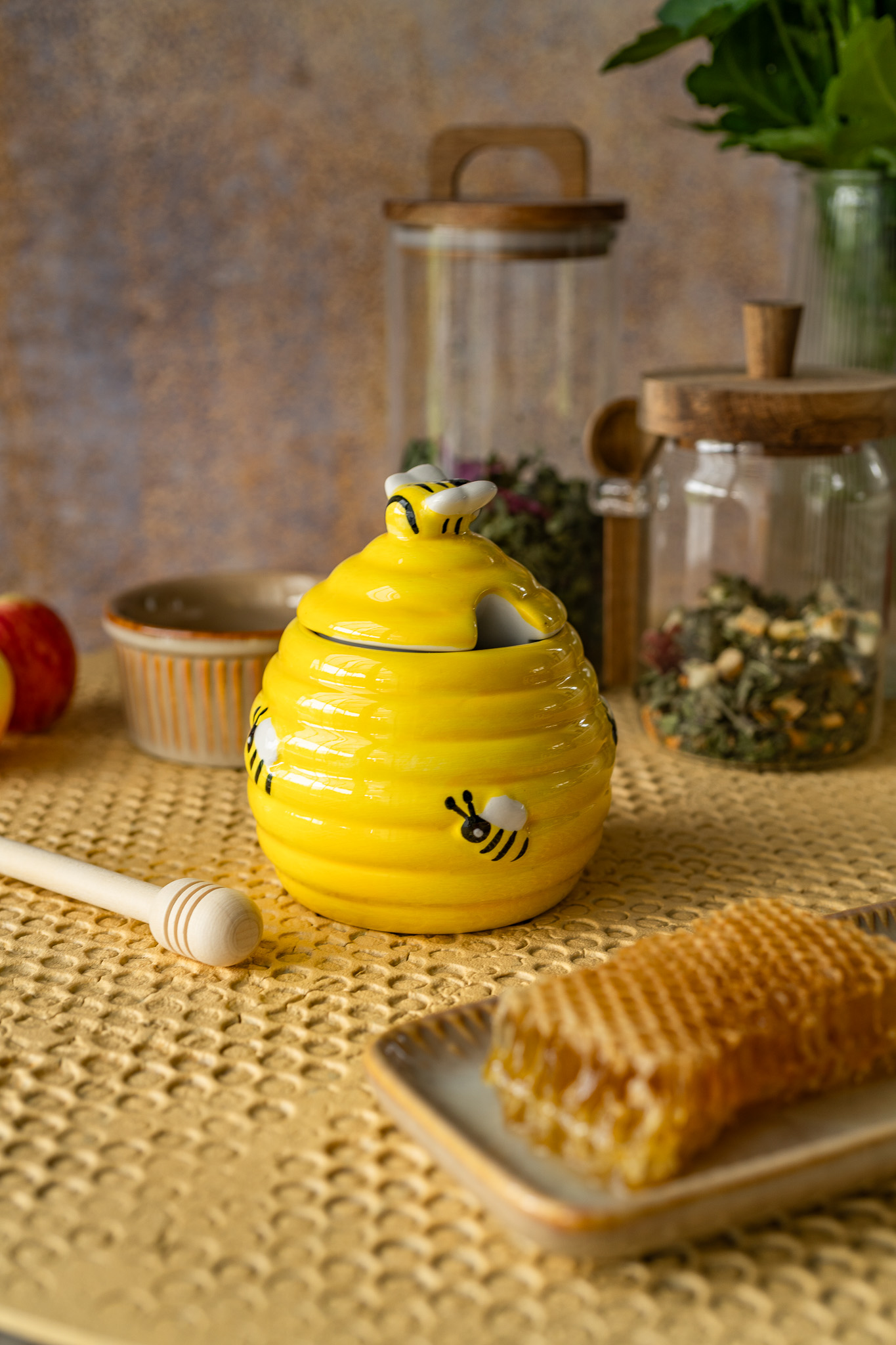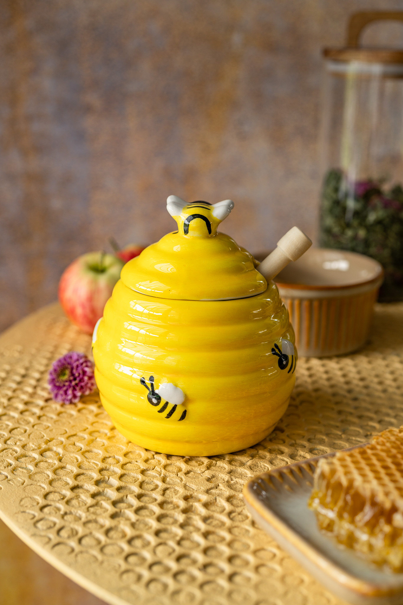 Tło Fotograficzne The Honey Layer – Tło ręcznie malowane w kształcie koła w miodowym odcieniu. Wzór to imitacja plastra miodu.
