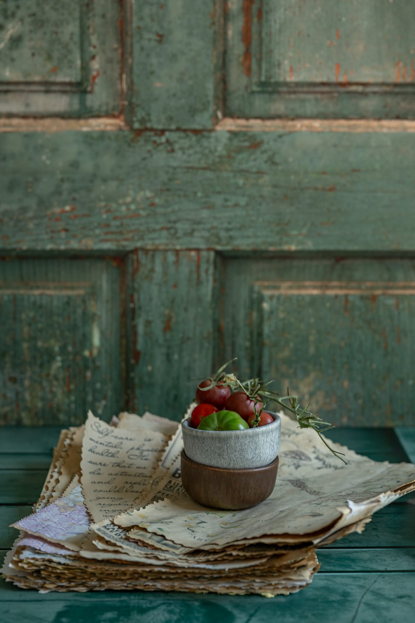 Tło Fotograficzne Timeless Entry – rustykalne zielone Tło – drzwi.