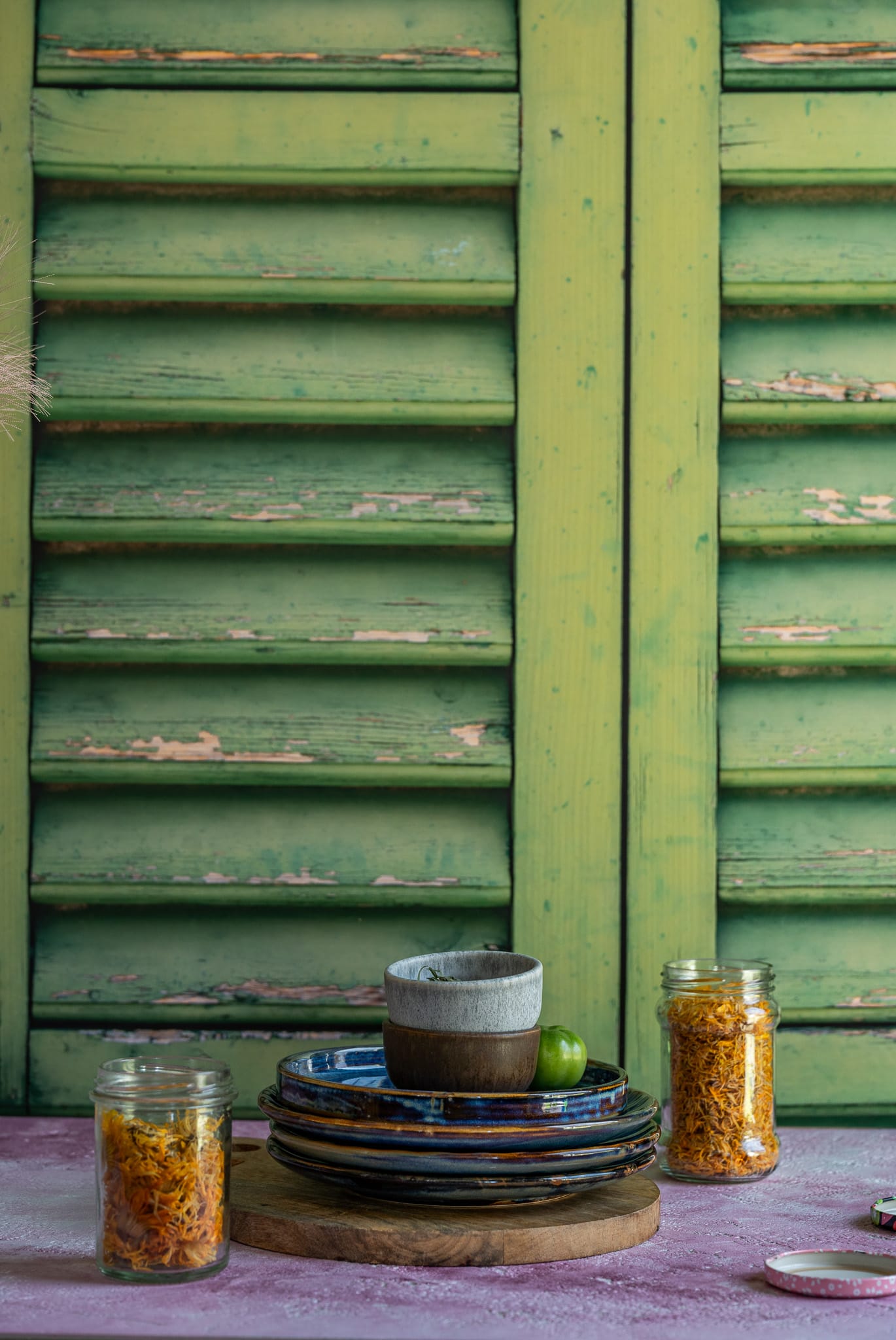 Tło o wyglądzie okiennic tworzy efekt głębi, który sprawia, że fotografowane przedmioty stają się wyraźniejsze i lepiej uwydatnione. Doskonale podkreśla fakturę jedzenia, materiały i detale produktów, a przy tym nie przytłacza głównego motywu. Idealnie pasuje do sesji zdjęciowych w stylu boho, rustykalnym, vintage, ale również do nowoczesnych aranżacji, w których liczy się harmonia pomiędzy naturą a stylem.